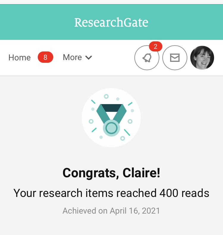 Well this is good news to end the week. 400 reads on Researchgate and 204 downloads on the White Rose ethesis site! Whilst I’ve been busy with homeschooling and lockdowns people have been reading my work. 😃 There’s much more in the pipeline that I will share as soon as I can.